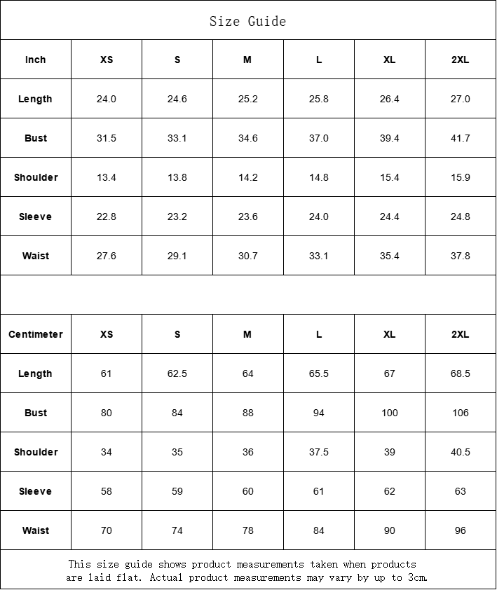 | Größe | Länge | Brust | Schultern | Ärmel | Taille |