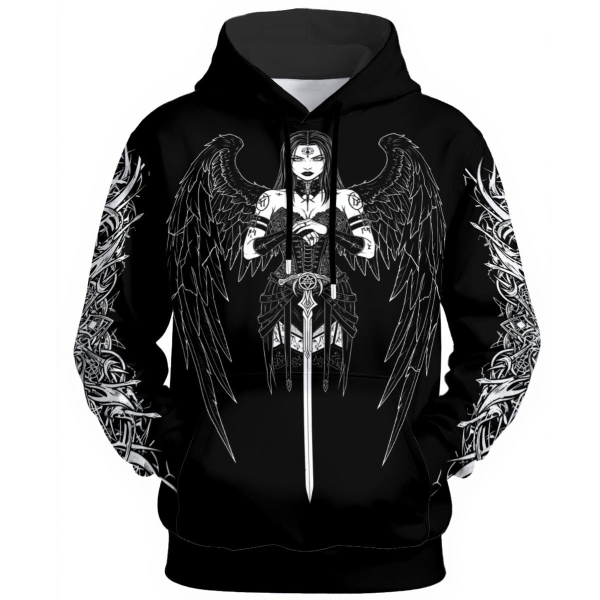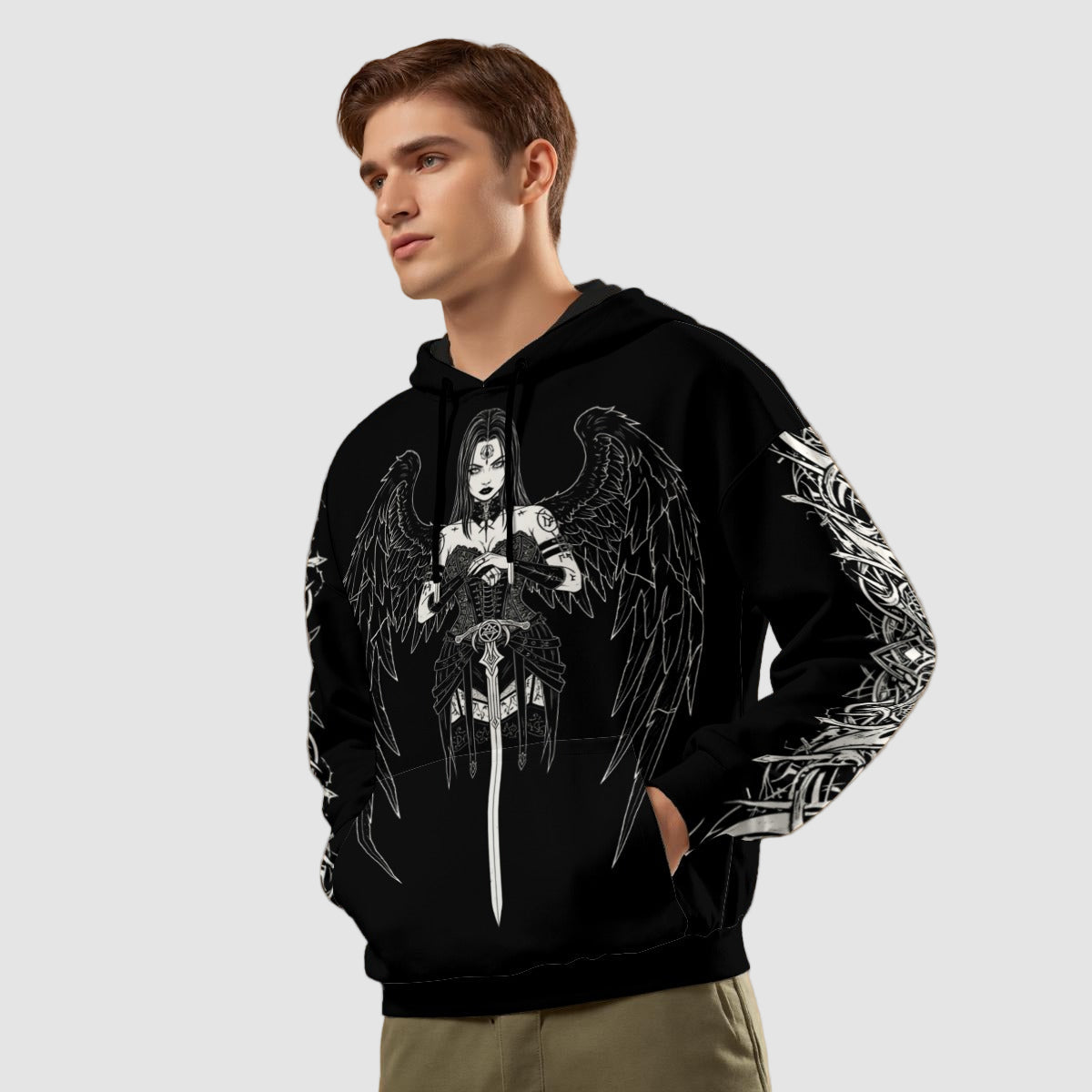 - Langer Ärmel, Schlingenmuster innen, mit Kordelzug, Tasche vorne