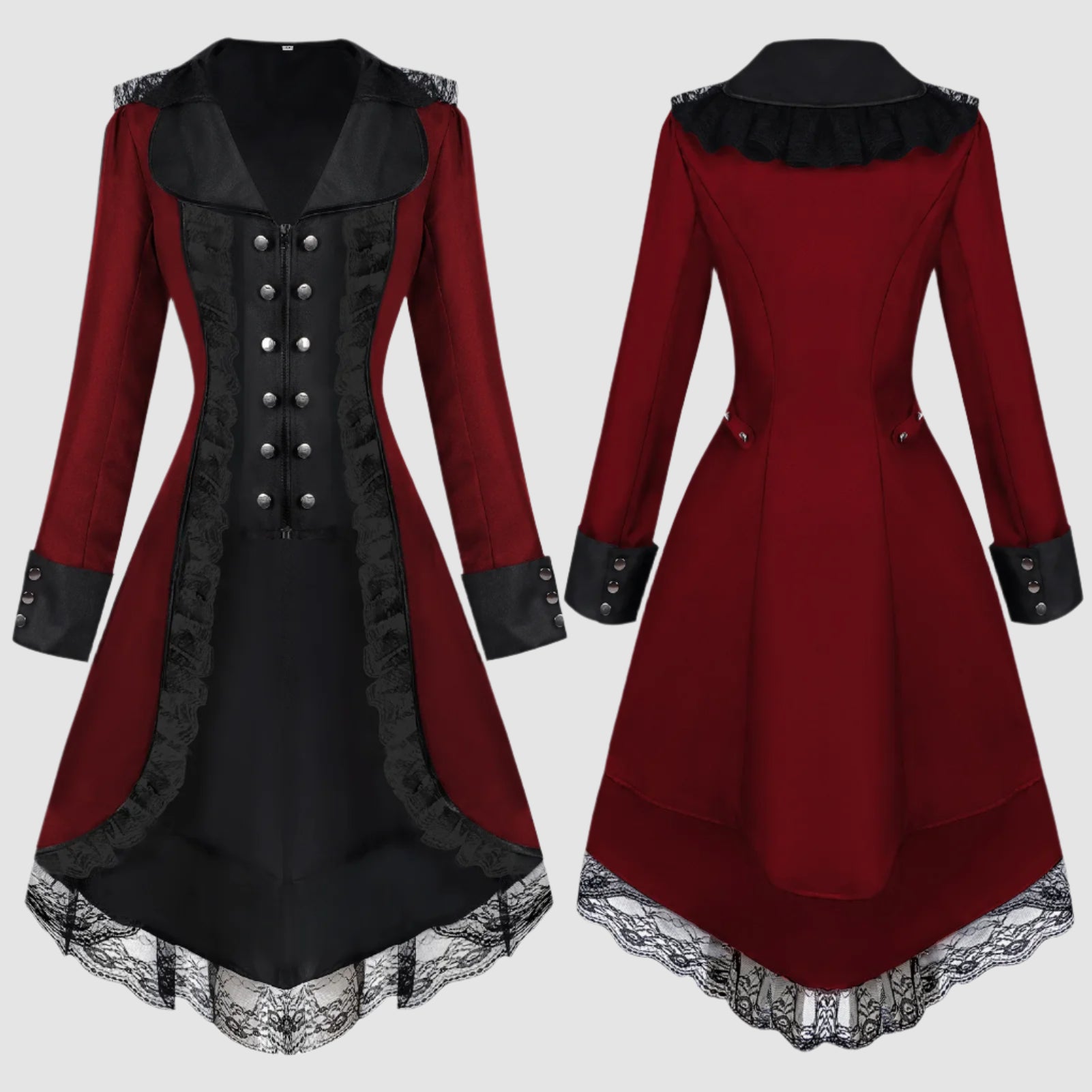- Dekorationen: dekorative Knöpfe und Spitze am unteren Rand