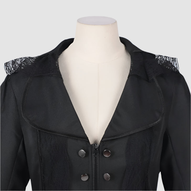 - Passform: lange, taillierte Jacke mit Spitzenverzierung