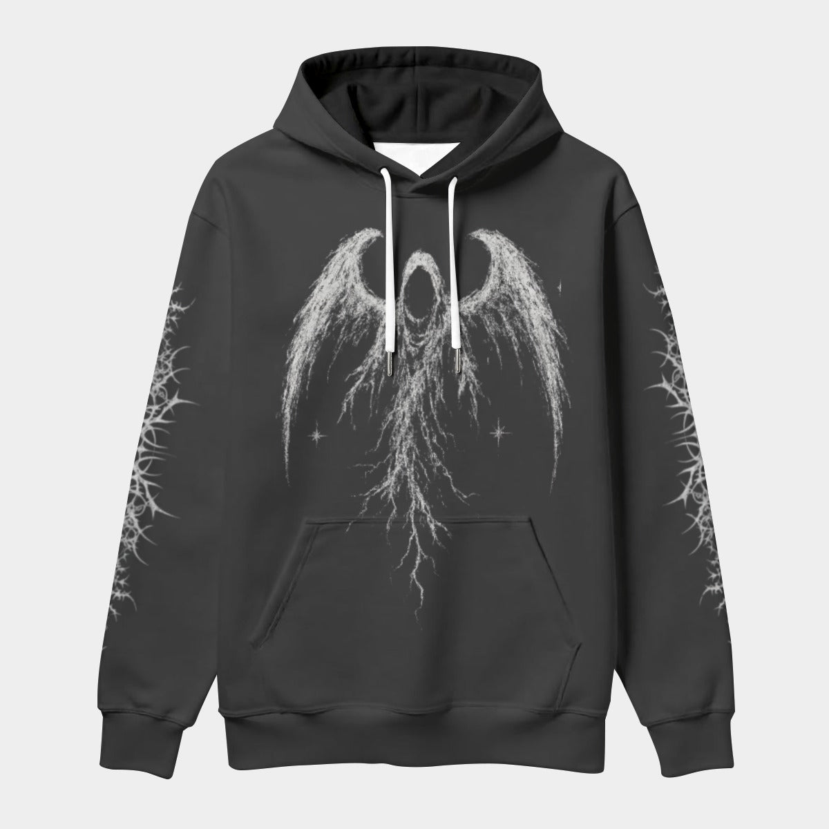- Elemente: Weißer Kordelzug, Vordertasche und schwarze Kapuzeninnenseite